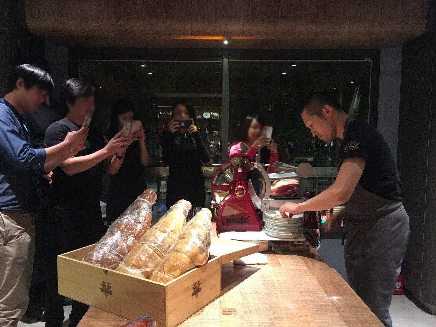 這次客座活動有高橋隼人主廚指定品牌:Galloni 義大利帕瑪風乾生火腿,以及西班牙60個月100% 純種Bellota 等級與各種不同風乾熟成年份的伊比利生火腿。